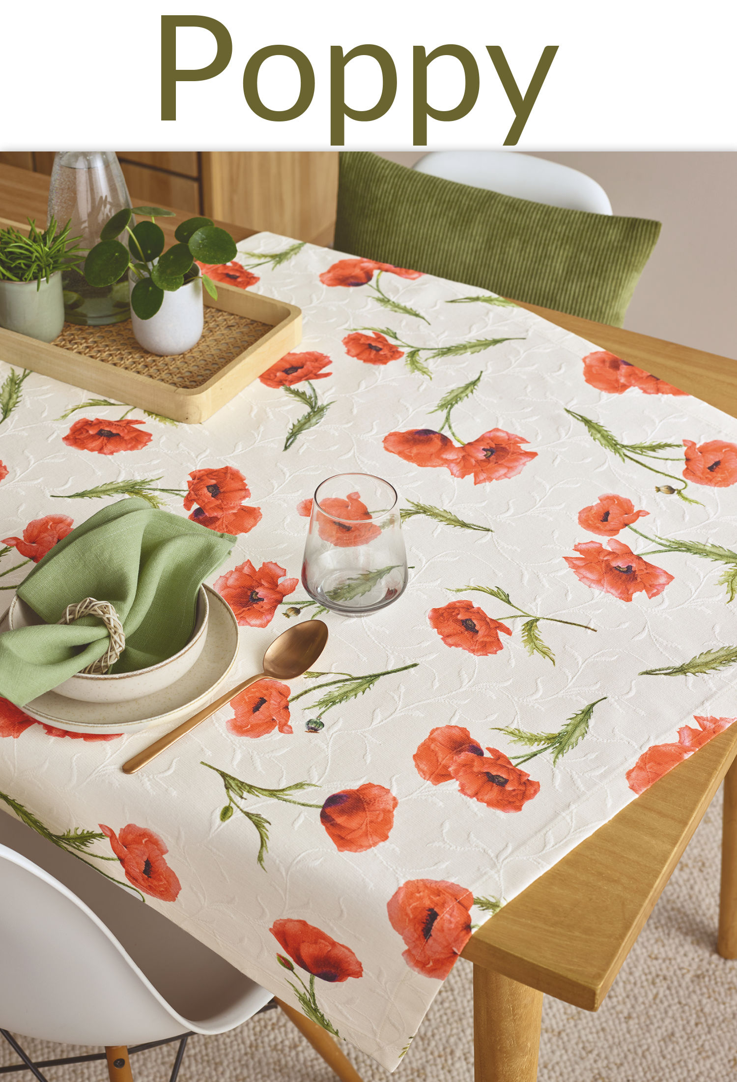 Mit POPPY können wir fröhlich und farbenfroh in den Sommer starten. Die rot blühenden Mohnblumen auf dem dreidimensionalen Baumwollgewebe sind wie ein sonniger Nachmittag – und wer möchte den nicht haben?