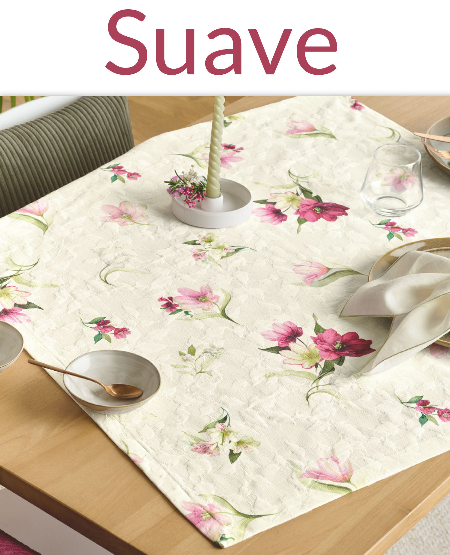 Zart, leicht und einfach angenehm fürs Auge sind diese schönen Blüten auf einem hellen Untergrund. Besonders interessant wird SUAVE durch die dreidimensionale Optik der Grundware aus 100% Baumwolle. Eine tolle Decke für gemütliche Kaffeerunden mit lieben Gästen.
