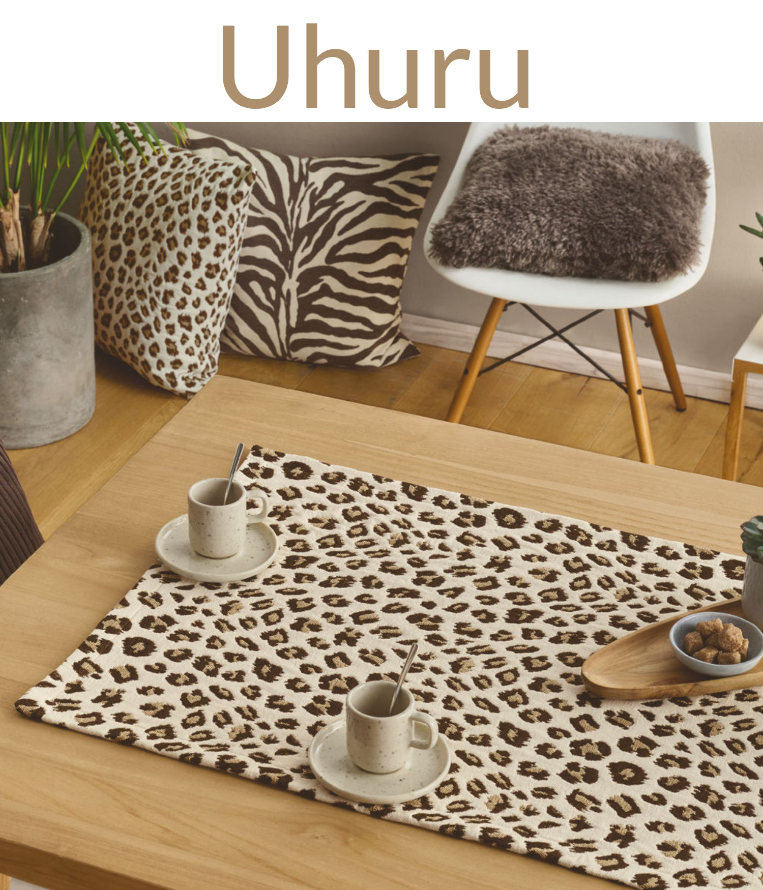 Mit diesem festen Jacquardgewebe in angesagtem, stilvollen Animaldesign können Sie sich nach Afrika auf eine Safari träumen. Hier benötigen Sie keine lästige Impfung und den Flug können Sie sich auch sparen – einfach die Decke UHURU auf den Tisch, einen Läufer aufs Sideboard und ein Kissen auf den Stuhl. Lassen Sie den Leo in Ihr Leben – aber keine Sorge – der beißt nicht!